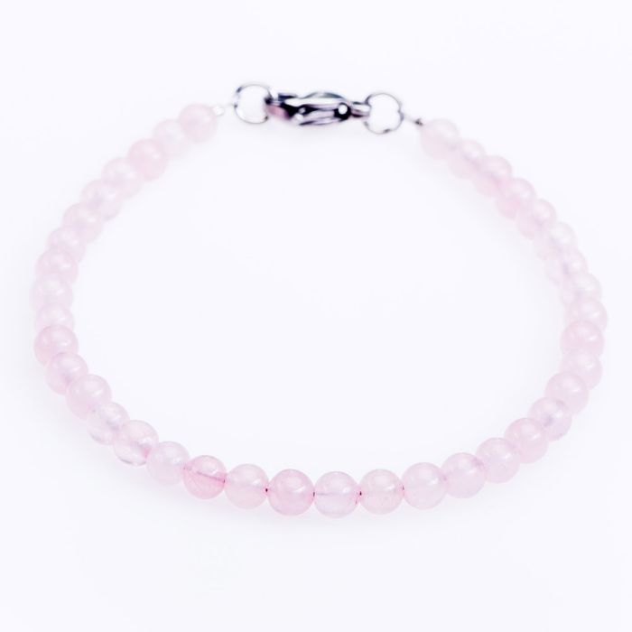 Bratara realizata din pietre de cuart roz cu diametrul de 4 mm.