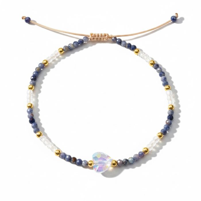 Martisor bratara, realizat din pietre de safir cu dimensiunea de 2.5 mm, Crystals from Swarovski si elemente din Argint 925 placat cu aur 14k.