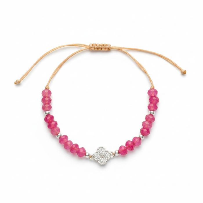Martisor bratara reglabila, realizat din pietre de agat cu dimensiunea de 4.5 mm si element decorativ din Argint 925 placat cu rodiu si ornat cu cubic zirconia