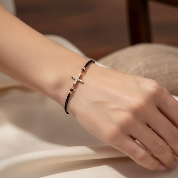 Bratara realizata din snur textil si ornamente din Aur 14K