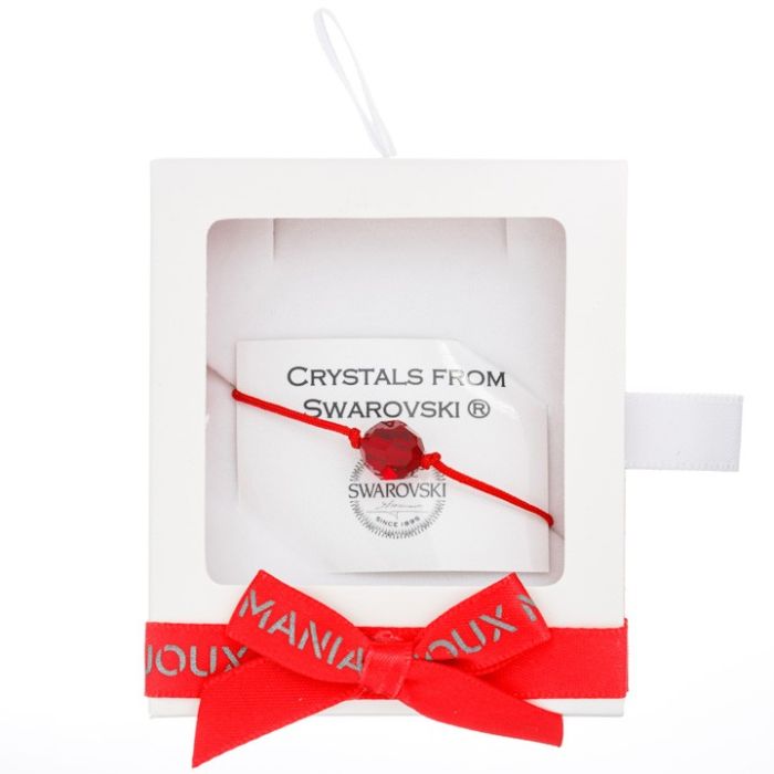 Martisor bratara swarovski 5000 Round Bead 8 mm Siam fir textil rosu 0.8 mm